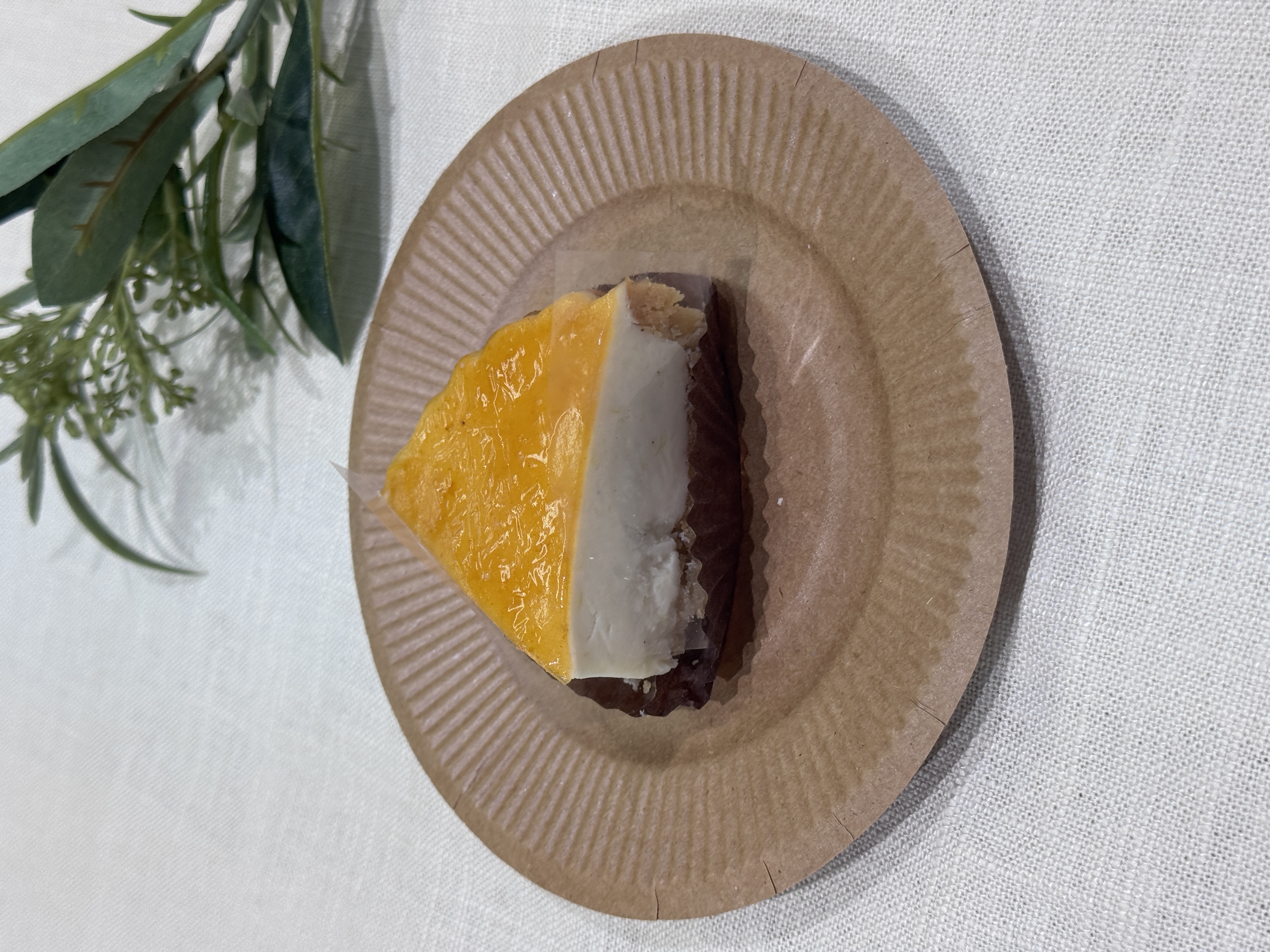 これがプラントベース⁉︎というくらいおいしくてびっくり! ヘルシーだから、とかではなくおいしいからこのケーキを選びたいと思うくらい。 クリームは濃厚だけどさっぱりしていて、上のアプリコットジャムの甘酸っぱさも良い。 見た目も普通のケーキと変わらないし、 冷凍で届くから食べたい時に解凍できるのも◎ しかもカットされて届くから切る手間もなくて、食べたい量を解凍できるのが地味にうれしいポイントです。