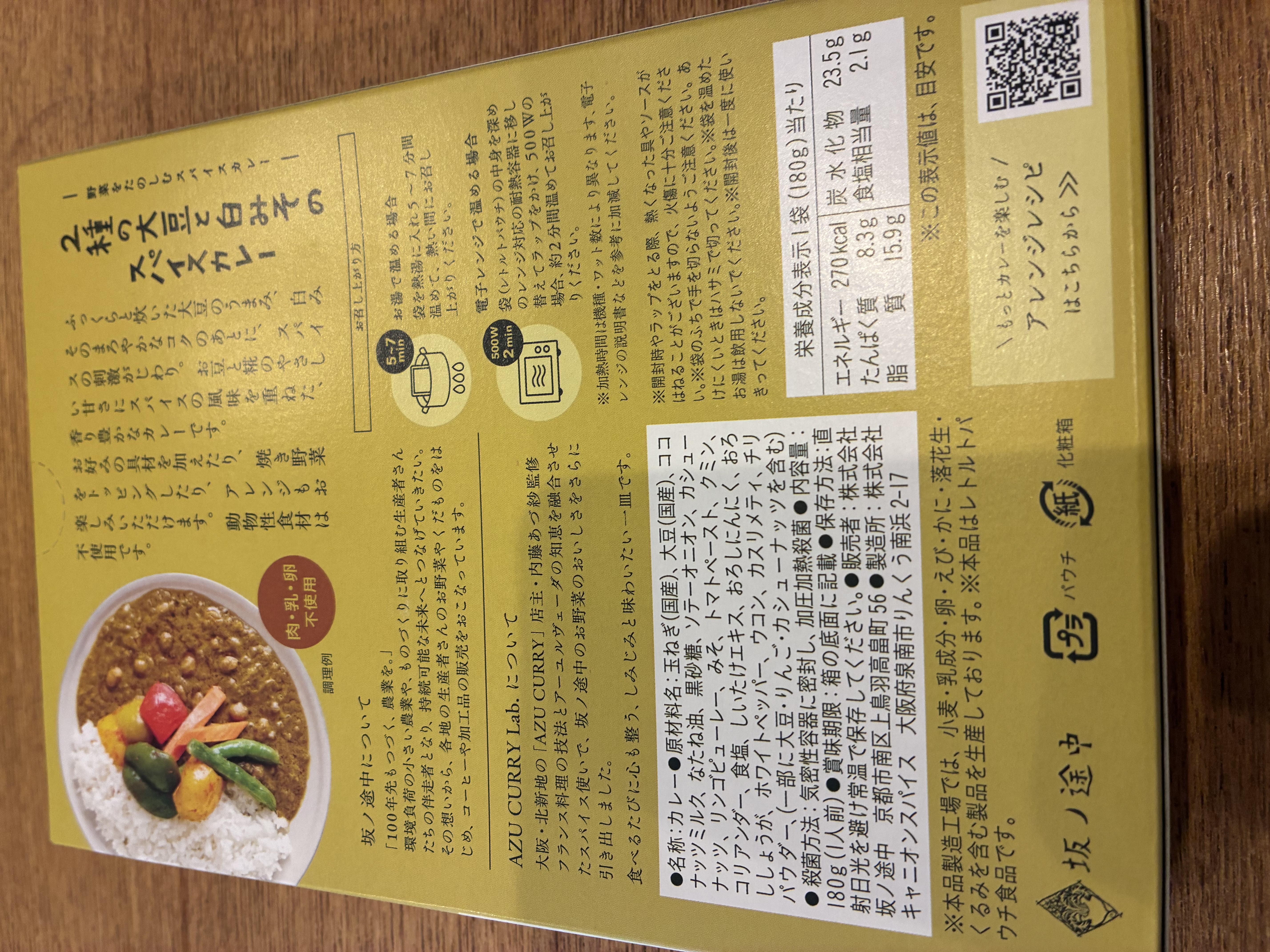 「2種の大豆と白みそのスパイスカレー」というヘルシーで美味しそうなお名前とかわいいパッケージに惹きつけられました。そしてプラントベース、無添加と身体に優しいこと間違いなしです。 期待以上にまろやかなお味でお豆好きには嬉しいたくさんのお豆が入っていました。 まろやかさの後にほどよい辛さがきいて、とっても美味しく大満足でした。 またリピートしようと思います。
