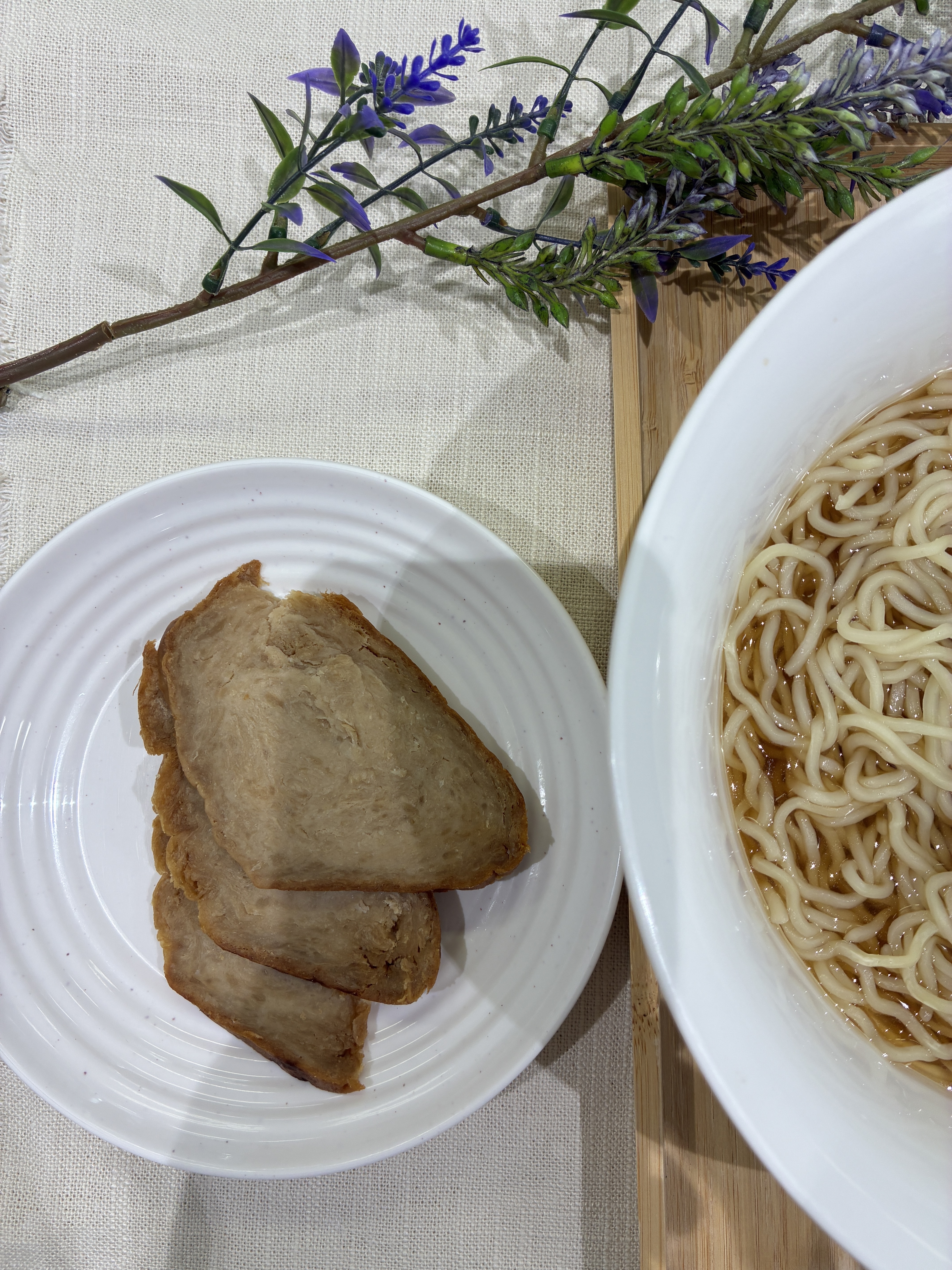 植物性原料のみで作られているチャーシューです 食べ応えのある味わいで、脂っこさがなく沢山食べられる美味しさです! お肉食べたいけど、胃もたれが・・など気にせず食べられてお夜食にも良さそうです!