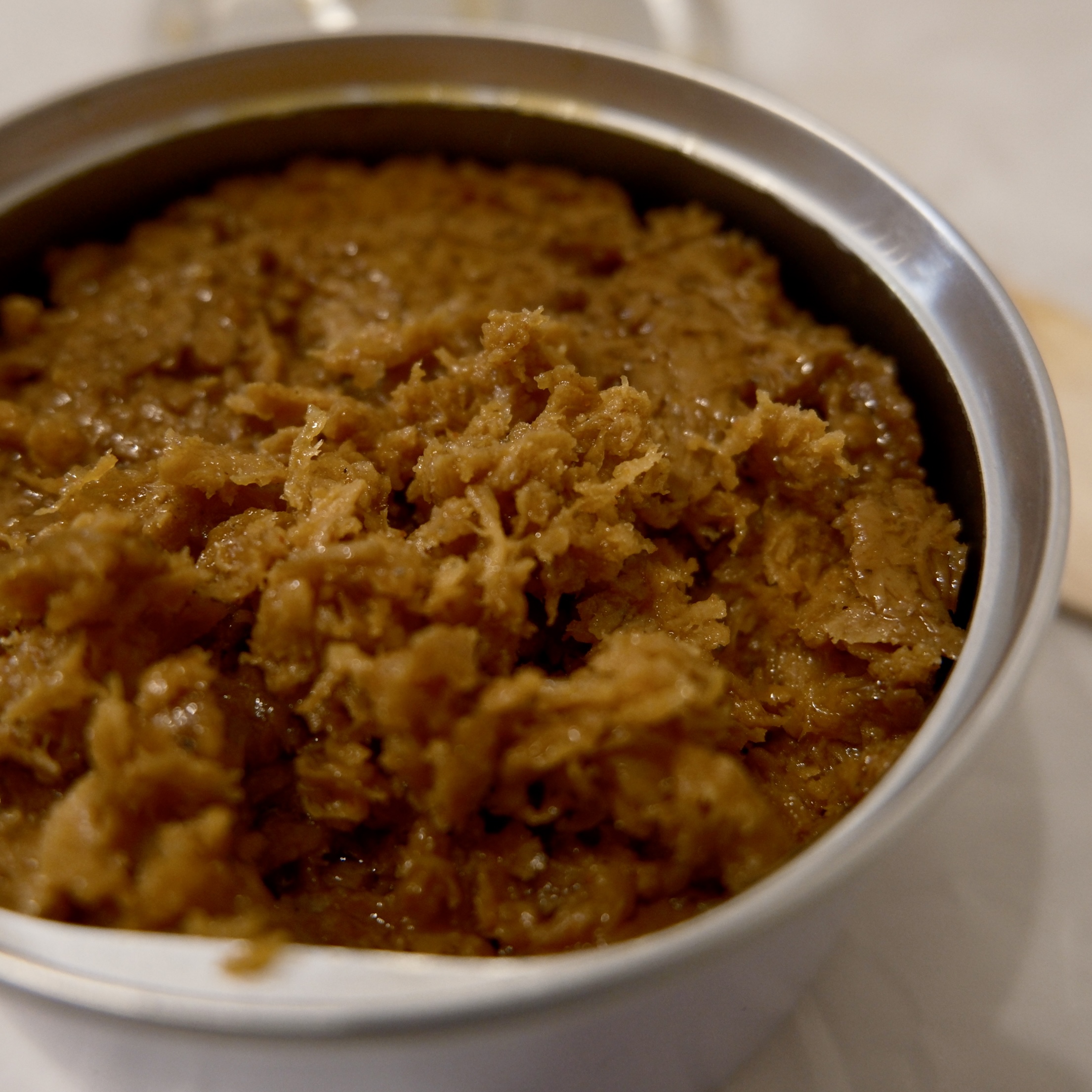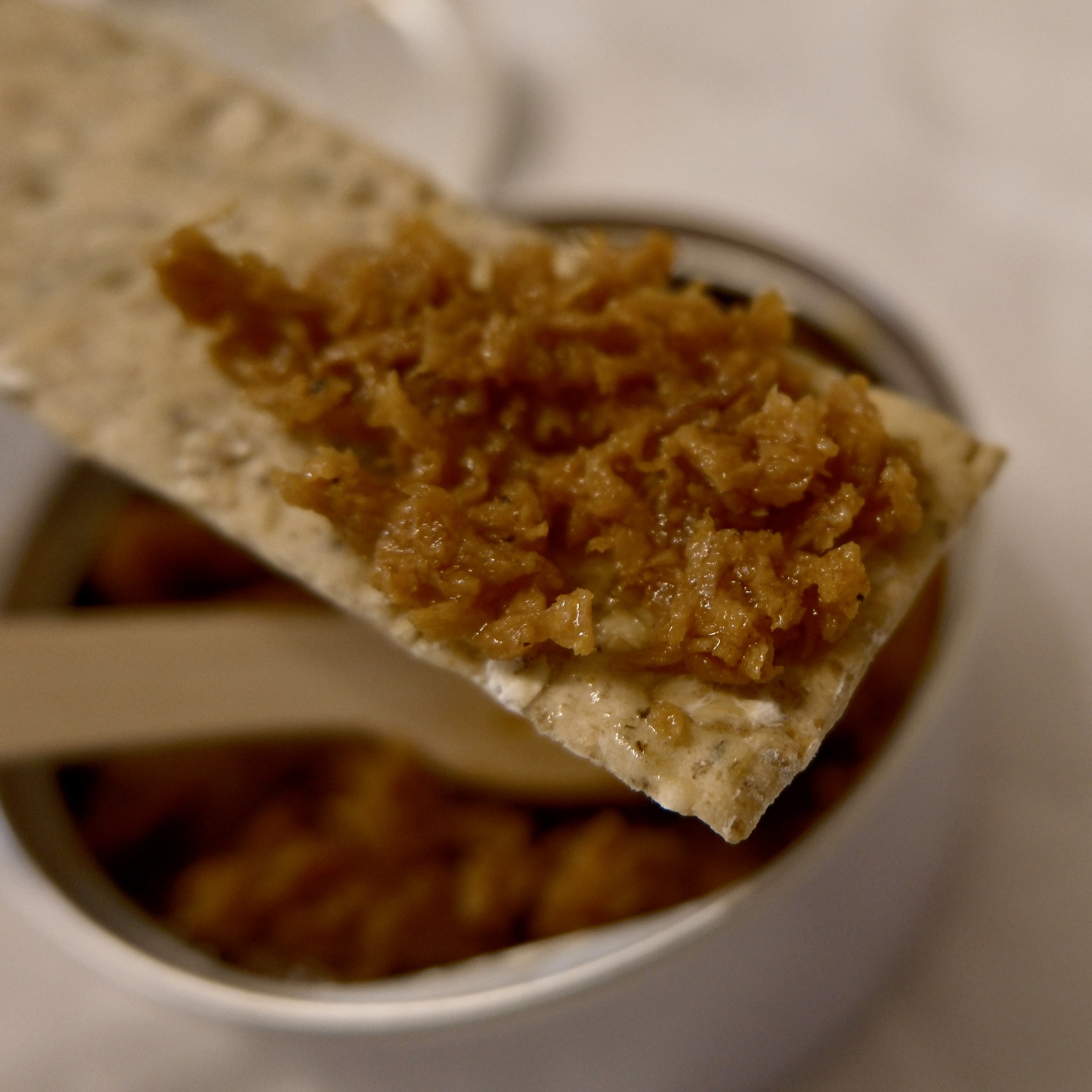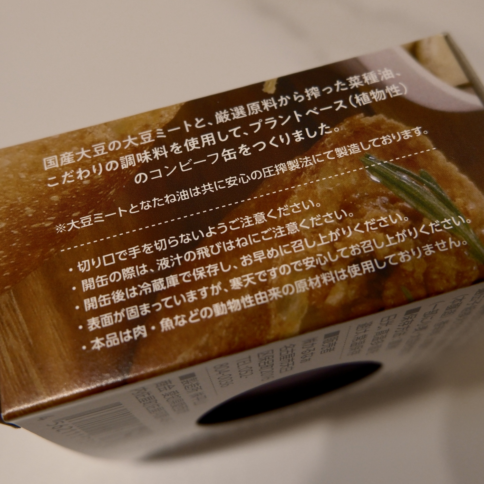 ①【味】コンビーフの特徴とされる濃厚な旨味やコクを取り除いたような味わいで癖が強くないので食べやすいです。 ②【食感】食べ応えがありますが、コンビーフの独特な繊維質がある食感とは異なります。 ③【香り】洋風だしの素を使用されているそうなので、ほんのりスパイスを感じる香り。大豆ミートのハンバーグやソーセージで嗅いだことのある香りに近いと思いました。 ④【満足度】好みが分かれそうですが、私は好きな味でした。 ⑤【おすすめポイント】味はコンビーフに近いので、代替品としてアリだと思います。そのままクラッカーに乗せたり、ポテトサラダに入れたり、おにぎりやサンドイッチの具材として。コンビーフ同様、幅広く使用できるので便利です。