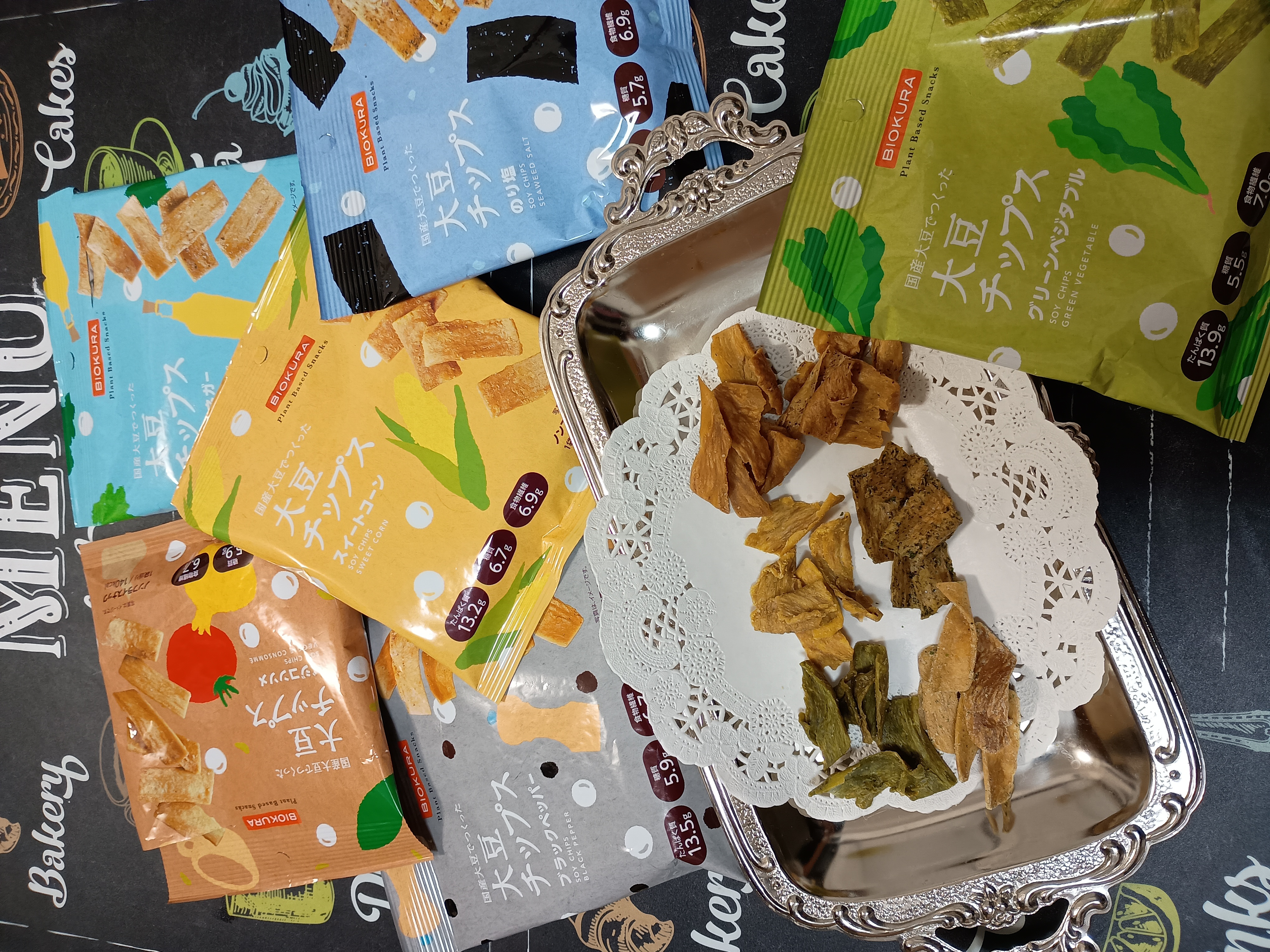 6種類それぞれの味がはっきり感じられ、楽しめます。家族で味の好みは分かれましたが、黒胡椒が人気でした。 普通のポテトチップスに比べるとかなり固いので歯の悪いお年寄りには食べづらいかもしれません。逆に、しっかり噛む習慣ができて、噛んでいるうちに大豆の香ばしい味がじんわりと感じられます。ノンフライで大豆イソフラボンが摂れる健康に良い美味しいおやつです。