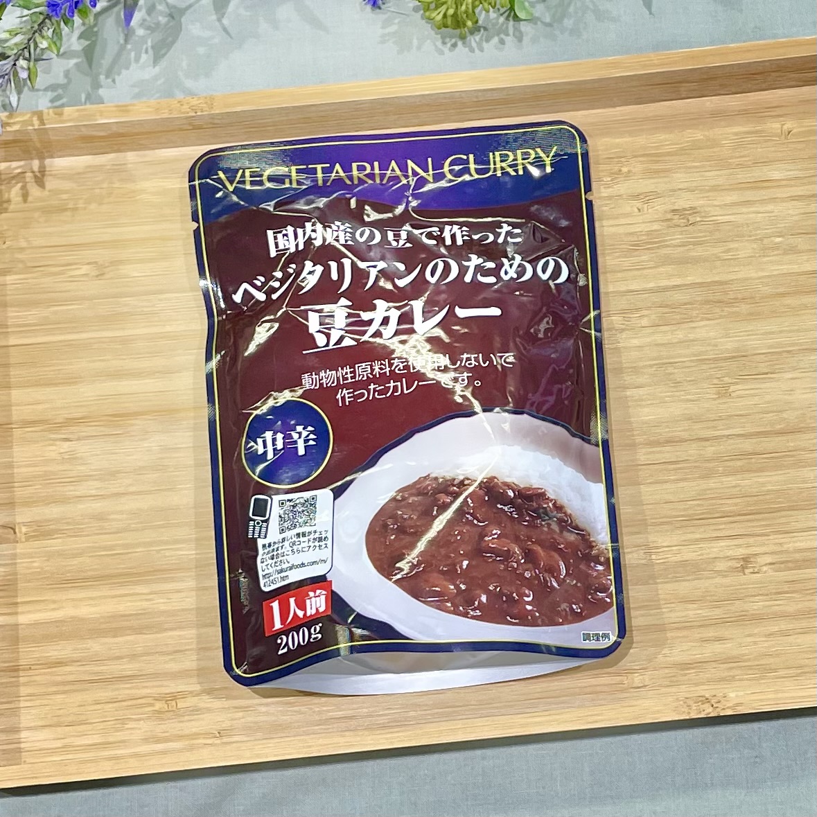 動物性原料、保存料、着色料不使用のベジタリアンのためのレトルトカレー。 淡白すぎない優しい味わいと、ほんのりスパイシーで美味しいです。 3種の豆(国産)の存在と食感もしっかり感じられて、食べ応えもあります。 カレーの気分の日に積極的に選びたいレトルトカレーです。