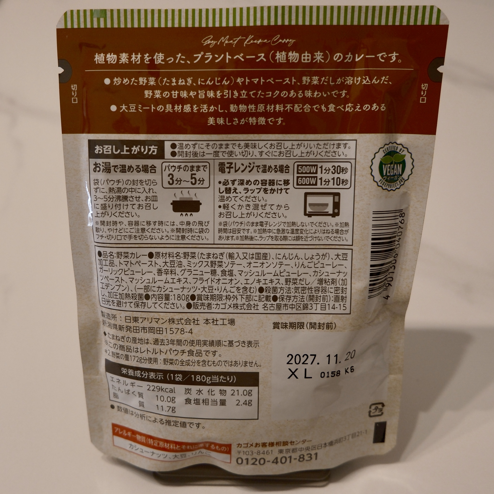 (※画像アップロードのため再投稿です) ①【味】キーマカレーを食べた!という満足感。とっても美味しくいただきました。少し酸味があって、それがまた良いです。 ②【食感】食べ応えがあります。大豆ミートの見事な具材感に感動しました。 ③【香り】トマトの爽やかな酸味、炒めたオニオンやにんじんの香ばしい甘み、スパイシーで食欲をそそるキーマカレーの香りです。 ④【満足度】手軽にとっても美味しい植物性のキーマカレーを食べられるので大満足です。 ⑤【おすすめポイント】ガッツリと食べた印象なのに、食べた後の体の負担をあまり感じさせない。料理に時間をかけたくないけど、体に優しくて味が濃いものを食べたい・・・という方に是非おすすめしたい商品です。
