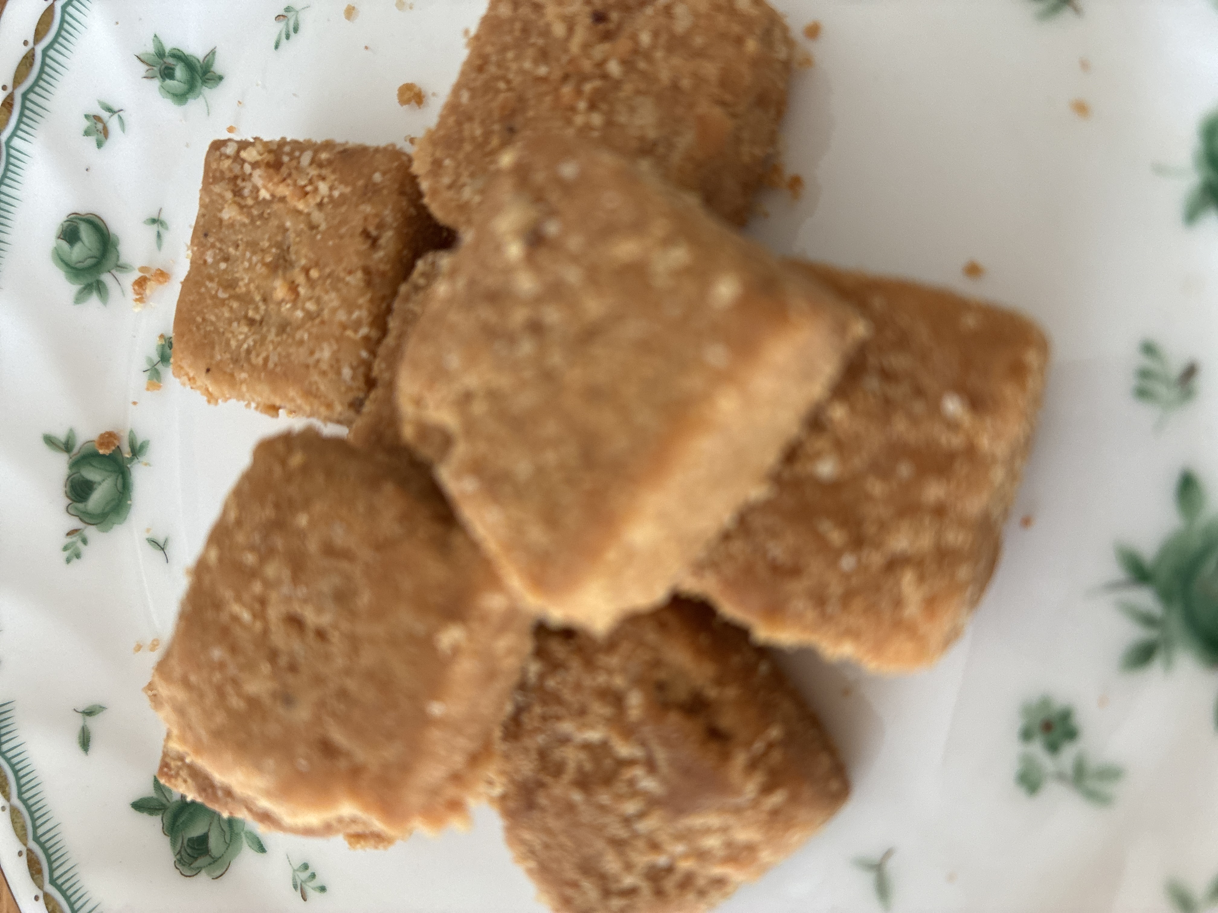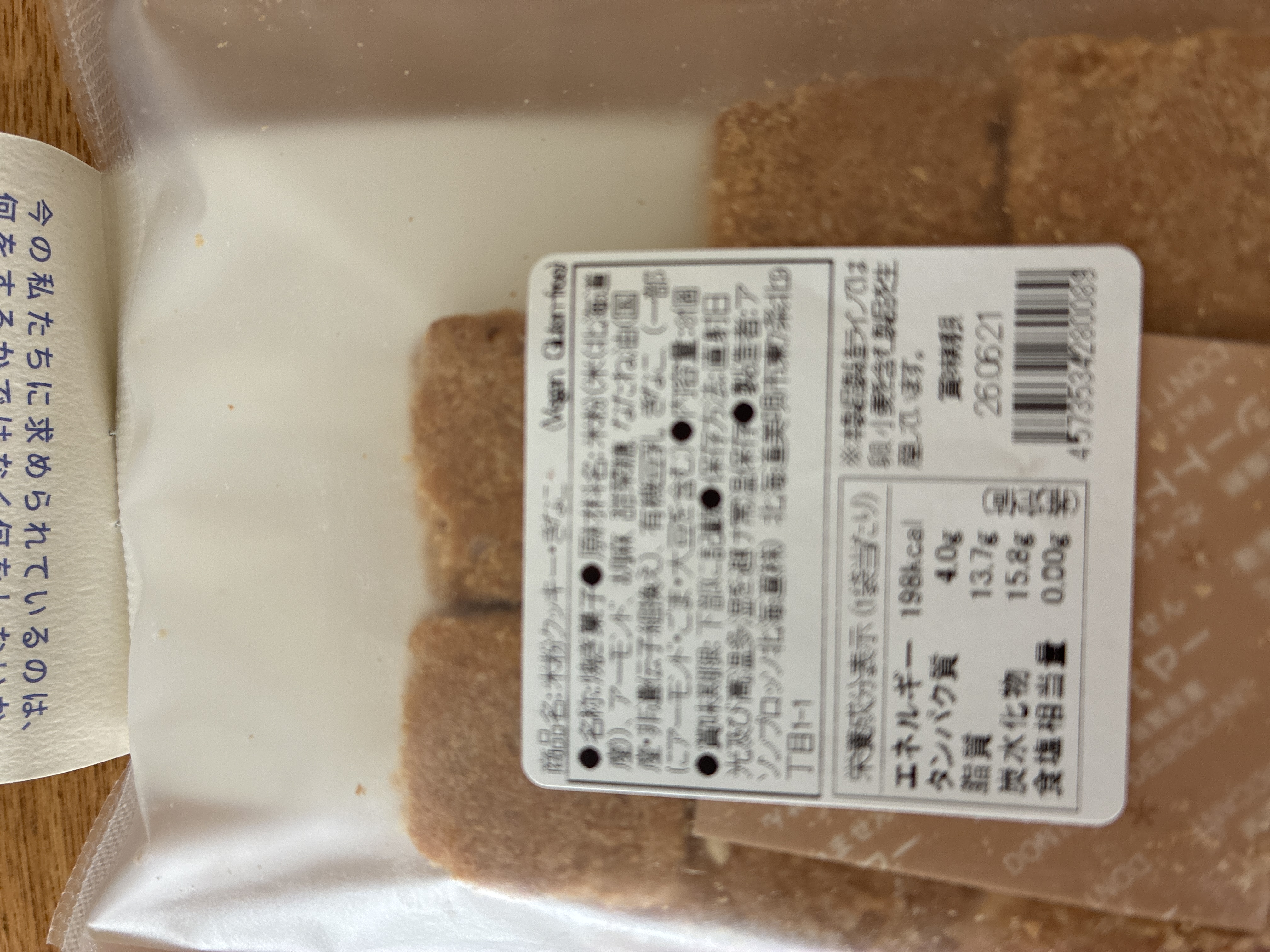 北海道産の米粉クッキー、サクサクでほのかな甘さでとても美味しいです。 米粉は硬いものが多いと思っていましたが、こちらはサクッと軽やか。 アーモンド、きなこ、ごま、豆乳と身体にも心にも優しく癒されるお味で安心して美味しくいただきました。